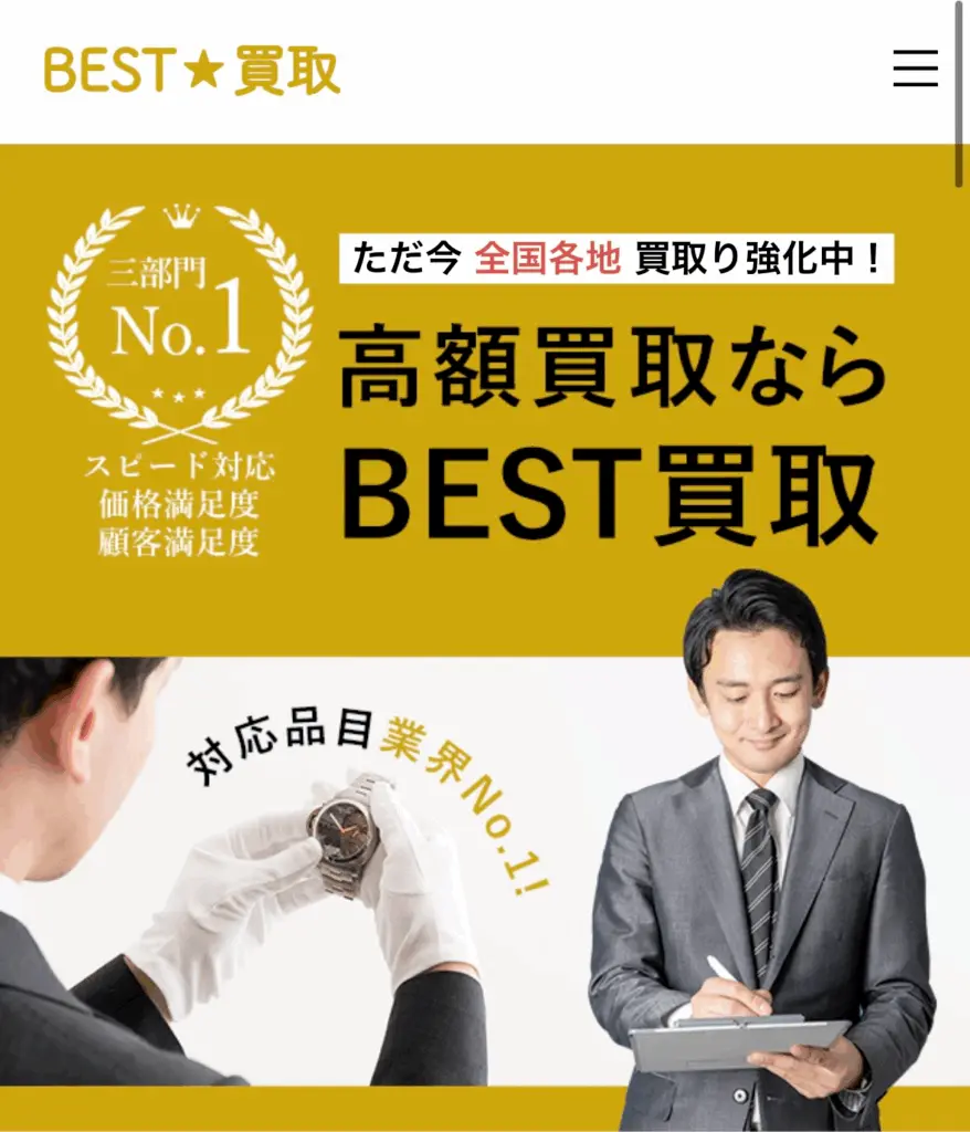 メリット | 最短即日30分で出張買取可能 必要事項や高額買取の理由記載あり 相見積もり対応 |