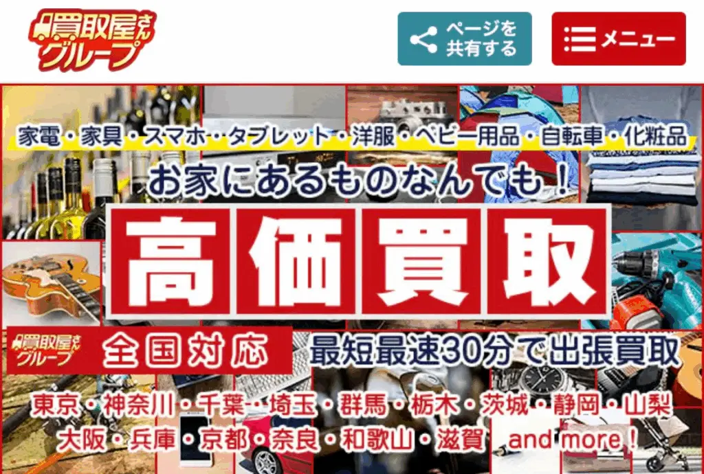 買取屋さんグループは、最短即日30分とスピーディな出張買取に対応している業者です。