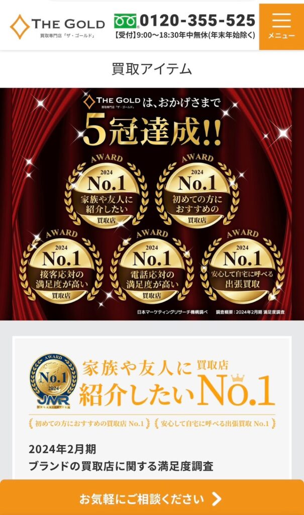 2024年2月期の「ブランドの買取店に関する満足度調査」における5項目で1位を獲得しています。