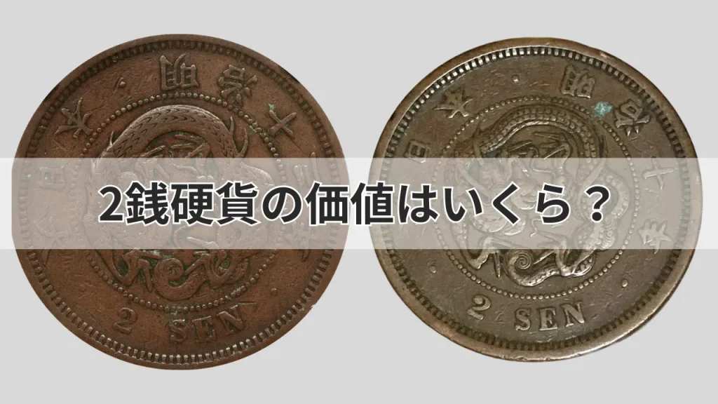 2銭硬貨の価値は、未使用の明治6年銘で最大20万円、明治10年銘の角ウロコ型でも6万円前後に達する高額古銭です。