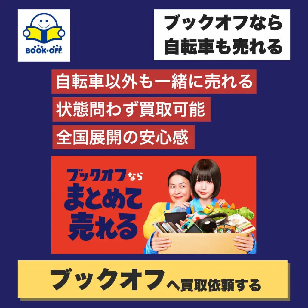 ブックオフは全国に展開する大手リユースショップで、本や家電だけでなく自転車の買取にも対応しています。