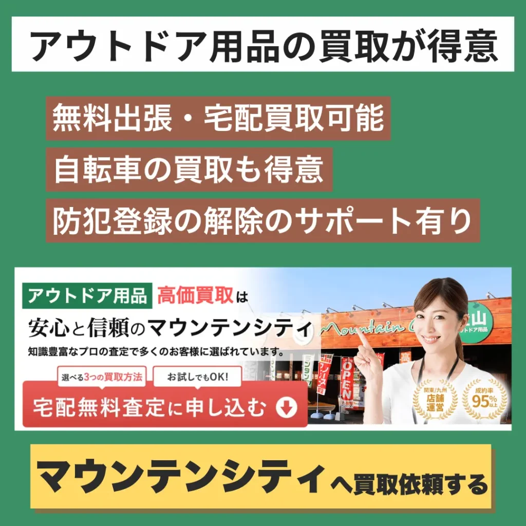 マウンテンシティはアウトドア用品やスポーツ用品を専門に買取する業者で、自転車の買取にも対応しています。