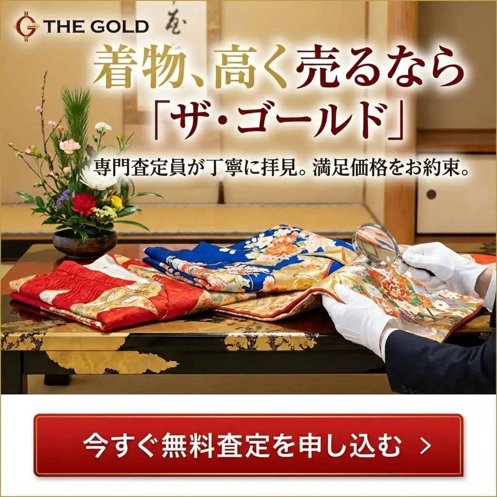 ザ・ゴールドは豊富な店舗数で利用しやすいです。宅配買取、出張買取にも対応していますが、特に顔を見ながら査定してもらいたいという「持込買取」希望の方におすすめです。実際に複数の店舗にて、着物の持込買取実績があります。店舗スタッフの質がよく、未使用品や産地による違いなどもきちんと見極めてくれます。